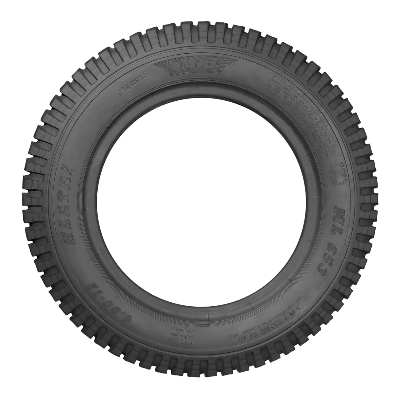 ML 653 is designed for all terrain application both suitable for off road and on road application. This is good for both in transmission and trailer fitment . Strong casing and cut resistance compound ensures reliability to run in all surfaces.