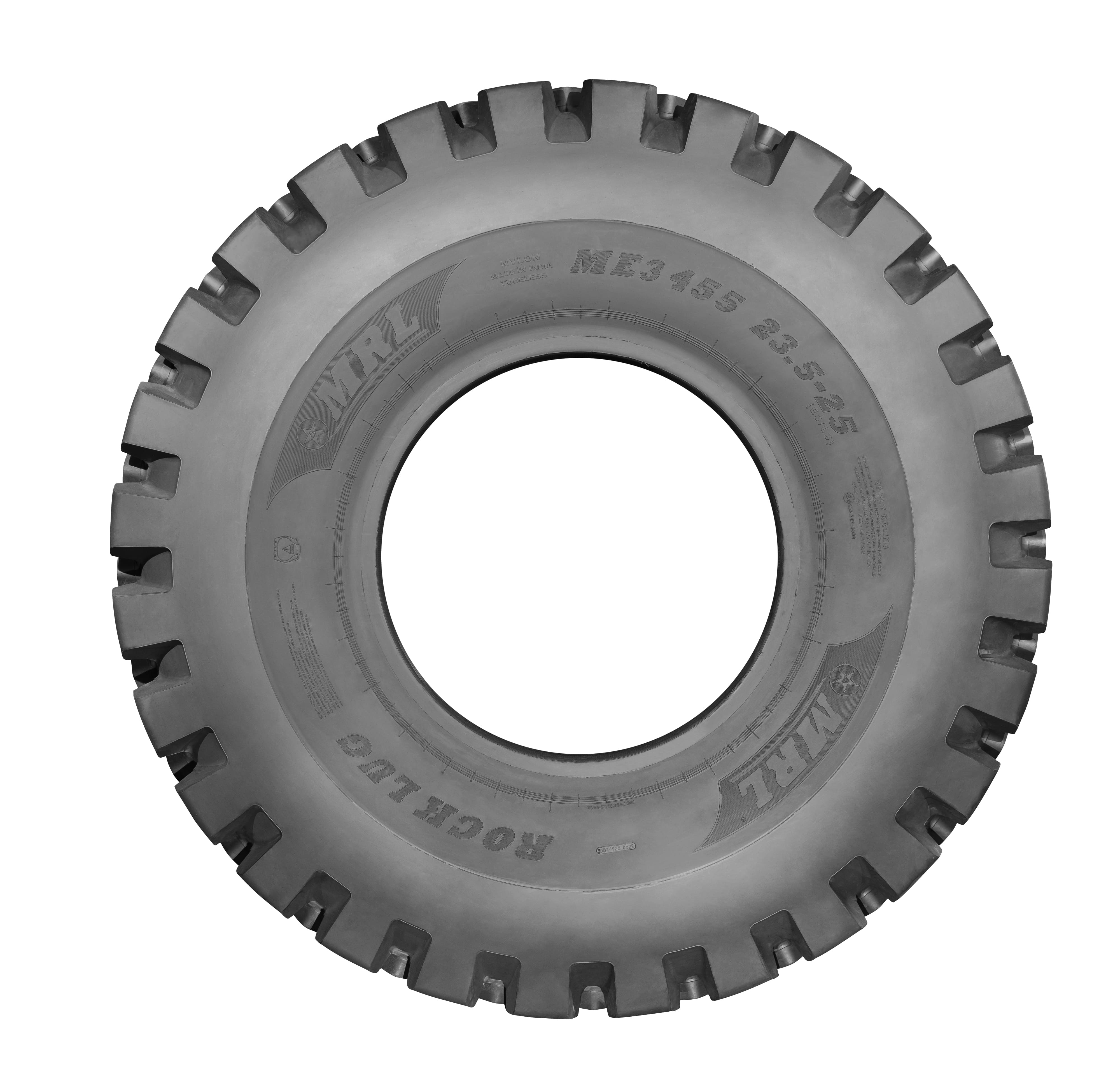 ME3-455 ROCK LUG is an impressive addition to MRL’s range of earthmover and mining tires, designed with versatility at its core. It is engineered to perform effectively across a wide variety of terrains, from soft and muddy soils to gravelly and rocky surfaces. Featuring an extra deep tread, advanced “S” pattern, enhanced durability, and an extended life cycle, the ME3-455 stands out as a robust, reliable, and efficient choice for demanding field operations.